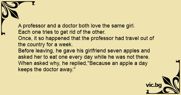 A Doctor and an Advocate loved the same girl. The Doctor gave her a rose daily and the advocate gave the girl an apple. The girl got confused and asked the Advocate, "There is a meaning in giving...