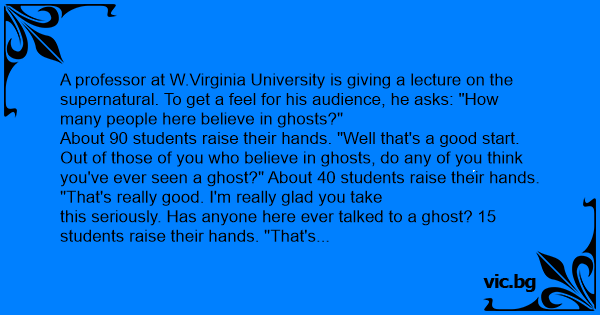 A professor at W.Virginia University is giving a lecture on the supernatural. To get a feel for his audience, he asks: "How many people here believe in ghosts?"