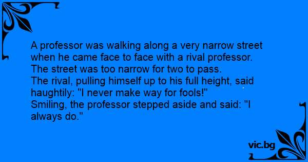 A professor was walking along a very narrow street when he came face to face with a rival professor.