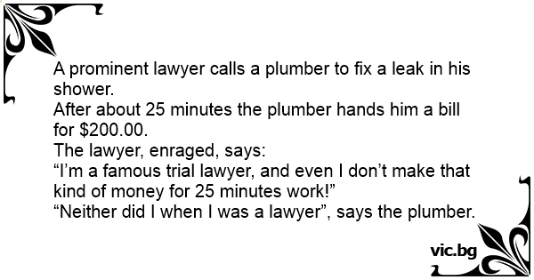 “Neither did I when I was a lawyer”, says the plumber.
