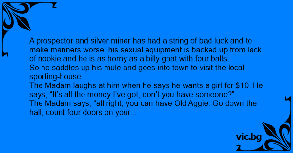 A prospector and silver miner has had a string of bad luck and to make manners worse, his sеxuаl equipment is backed up from lack of nookie and he is as hоrny as a billy goat with four ваlls.