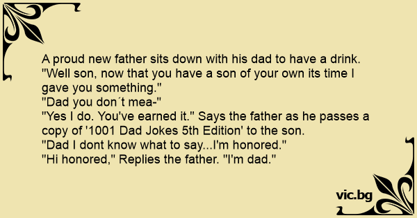 "Yes I do. You've earned it." Says the father as he passes a copy of '1001 Dad Jokes 5th Edition' to the son.