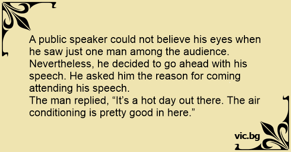 A public speaker could not believe his eyes when he saw just one man among the audience.