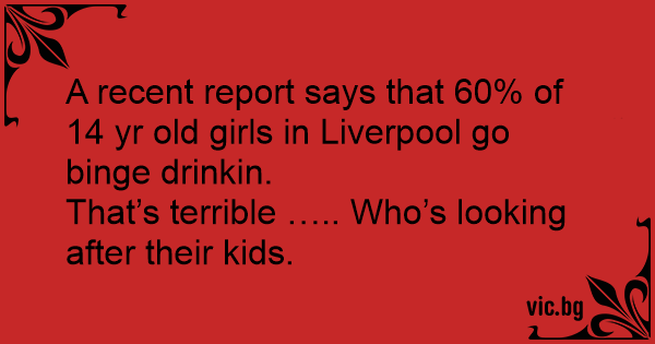 A recent report says that 60% of 14 yr old girls in Liverpool go binge drinkin.