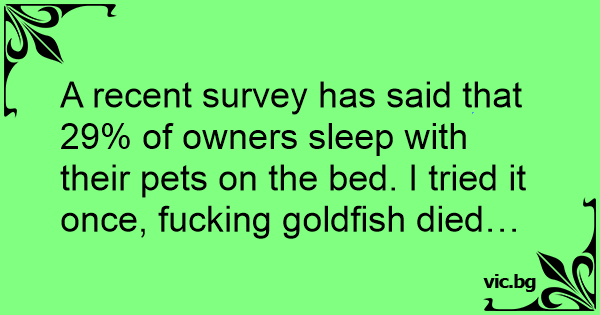 A recent survey has said that 29% of owners sleep with their pets on the bed. I tried it once, fuскing goldfish died…