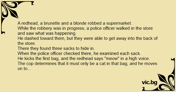A redhead, a brunette and a blonde robbed a supermarket.