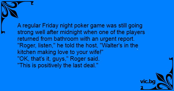 A regular Friday night poker game was still going strong well after midnight when one of the players returned from bathroom with an urgent report.