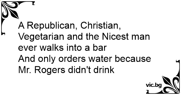 A Republican, Christian, Vegetarian and the Nicest man ever walks into a bar