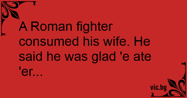 A Roman fighter consumed his wife. He said he was glad 'e ate 'er...