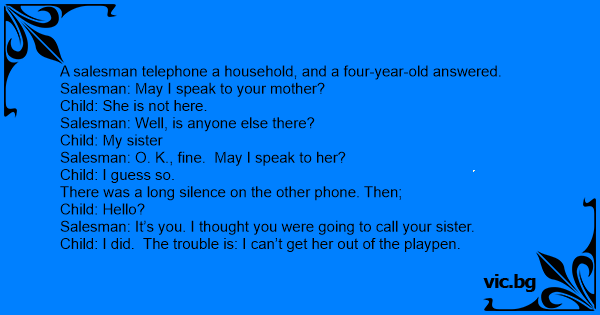 A salesman telephone a household, and a four-year-old answered.