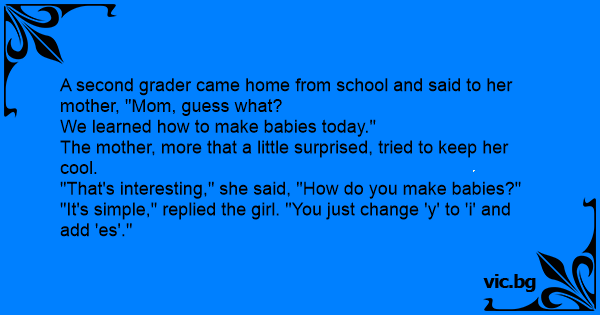 A second grader came home from school and said to her mother, "Mom, guess what?