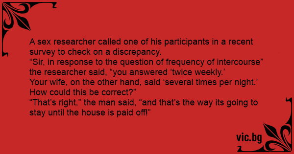 “Sir, in response to the question of frequency of inтеrсоursе” the researcher said, “you answered ‘twice weekly.’