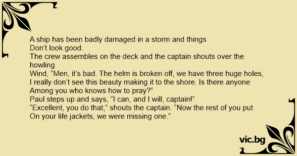 Wind, “Men, it’s bad. The helm is broken off, we have three huge holes,