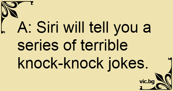A: Siri will tell you a series of terrible knock-knock jokes.