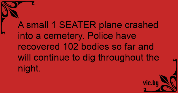 A small 1 SEATER plane crashed into a cemetery. Police have recovered 102 bodies so far and will continue to dig throughout the night.