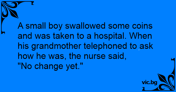 A small boy swallowed some coins and was taken to a hospital. When his grandmother telephoned to ask how he was, the nurse said,
