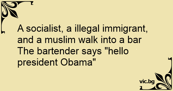 A socialist, a illegal immigrant, and a muslim walk into a bar