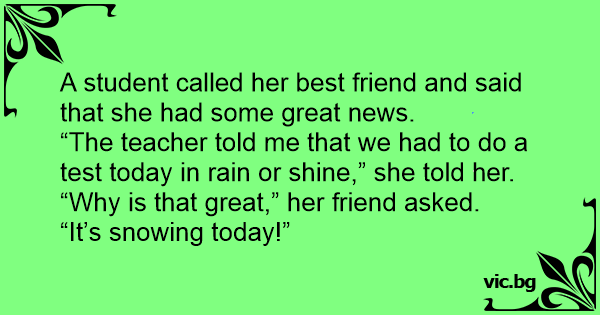 “The teacher told me that we had to do a test today in rain or shine,” she told her.