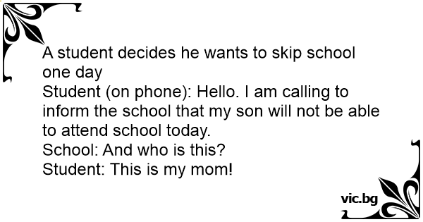 Student (on phone): Hello. I am calling to inform the school that my son will not be able to attend school today.