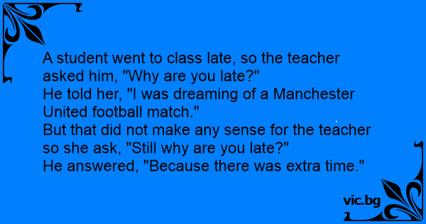 A student went to class late, so the teacher asked him, "Why are you late?"