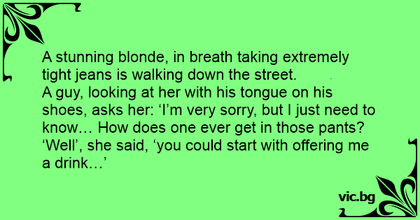 A stunning blonde, in breath taking extremely tight jeans is walking down the street.