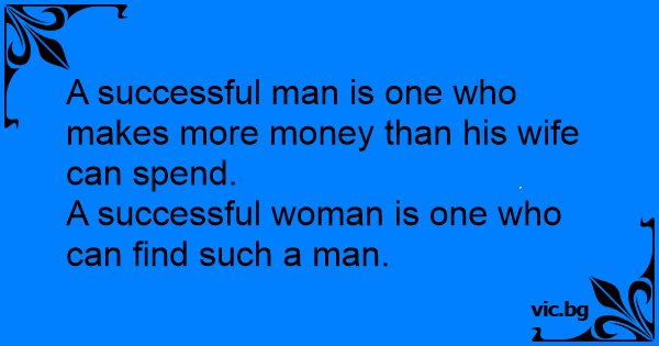 Успял мъж е този, който изкарва повече пари, отколкото жена му може да изхарчи.