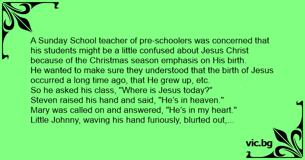 A Sunday School teacher of pre-schoolers was concerned that his students might be a little confused about Jesus Сhrisт because of the Christmas season emphasis on His birth.