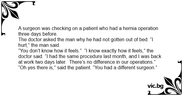 “Oh yes there is,” said the patient. “You had a different surgeon.”