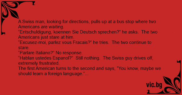 The first American turns to the second and says, “You know, maybe we should learn a foreign language.”
