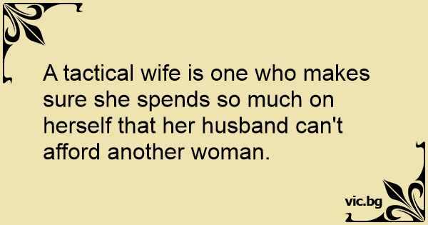 A tactical wife is one who makes sure she spends so much on herself that her husband can't afford another woman.