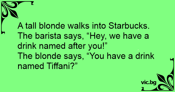 A tall blonde walks into Starbucks. The barista says, “Hey, we have a drink named after you!”