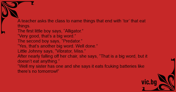 A teacher asks the class to name things that end with ‘tor’ that eat things.