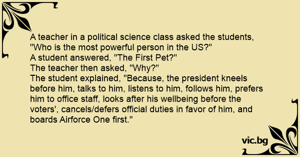 A teacher in a political science class asked the students, "Who is the most powerful person in the US?"