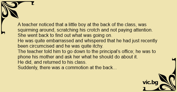 A teacher noticed that a little boy at the back of the class, was squirming around, scratching his crotch and not paying attention.