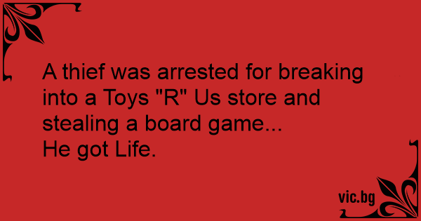 A thief was arrested for breaking into a Toys "R" Us store and stealing a board game...