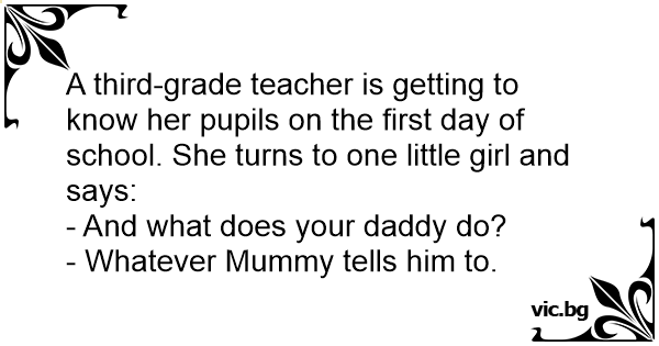 A third-grade teacher is getting to know her pupils on the first day of school. She turns to one little girl and says: