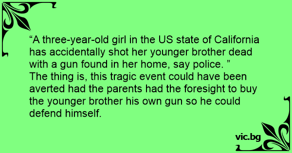 The thing is, this tragic event could have been averted had the parents had the foresight to buy the younger brother his own gun so he could defend himself.