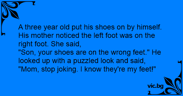 "Son, your shoes are on the wrong feet." He looked up with a puzzled look and said,