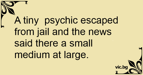 A tiny psychic escaped from jail and the news said there a small medium at large.
