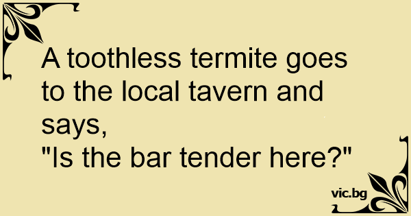 A toothless termite goes to the local tavern and says,
