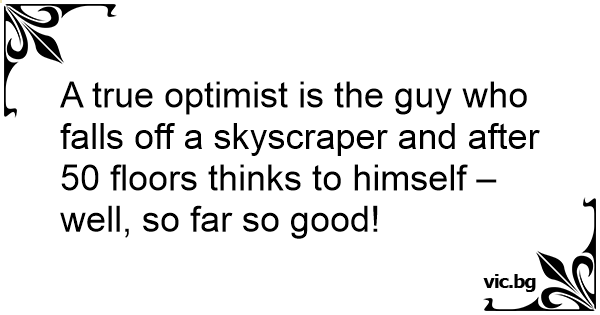 A true optimist is the guy who falls off a skyscraper and after 50 floors thinks to himself – well, so far so good!