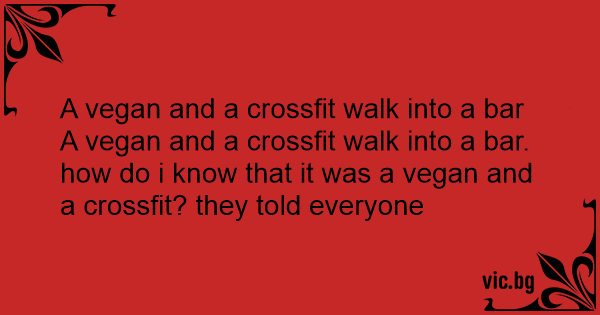 A vegan and a crossfit walk into a bar. how do i know that it was a vegan and a crossfit? they told everyone