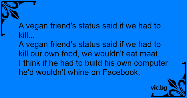 A vegan friend's status said if we had to кill our own food, we wouldn't eat meat.