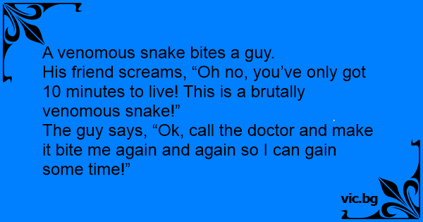 His friend screams, “Oh no, you’ve only got 10 minutes to live! This is a brutally venomous snake!”