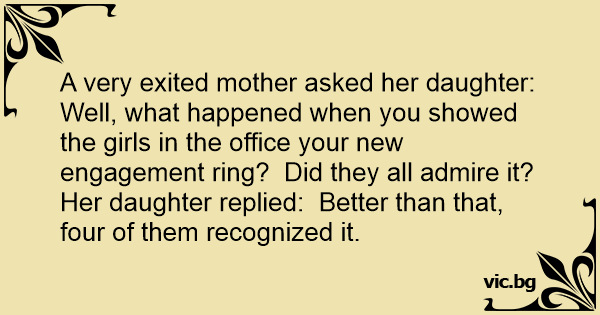 A very exited mother asked her daughter: Well, what happened when you showed the girls in the office your new engagement ring? Did they all admire it?