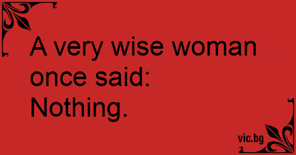 A very wise woman once said: