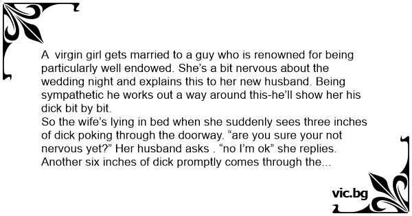 A virgin girl gets married to a guy who is renowned for being particularly well endowed. She’s a bit nervous about the wedding night and explains this to her new husband. Being sympathetic he works out a way around this-he’ll show her his diск bit by bit.