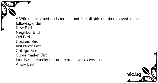 A Wife checks husbands mobile and find all girls numbers saved in the following order: