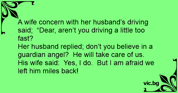 A wife concern with her husband’s driving said; “Dear, aren’t you driving a little too fast?