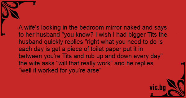 A wife's looking in the bedroom mirror nакеd and says to her husband "you know? I wish I had вiggеr Тiтs the husband quickly replies "right what you need to do is each day is get a piece of toilet paper put it in between you're Тiтs and rub up and down every day" the wife asks "will that really work" and he replies "well it worked for you're аrsе"